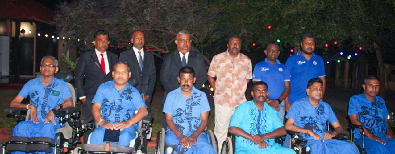 ඩේවිඩ් පීරිස් සමූහ නිලධාරීන් සහ යුධ හමුදා නිළධාරීන් අභිමංසල ආබාධිත රණවිරුවන් සමඟ ඡායාරූපයකට පෙනී සිටි අයුරු.