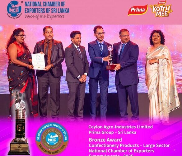 Ceylon Agro Industries, Prima Group Sri Lanka, has been honoured with the Bronze Award in the Confectionery Products – Large Sector category at the prestigious National Export Awards 2025, organised by the National Chamber of Exporters of Sri Lanka (NCE).